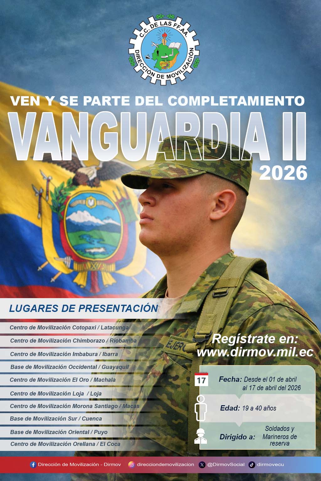 Ven y se parte del completamiento «Vanguardia II» 2026, inscríbete a partir del 01 hasta el 17 de abril del 2026 solo soldados y marineros de reserva